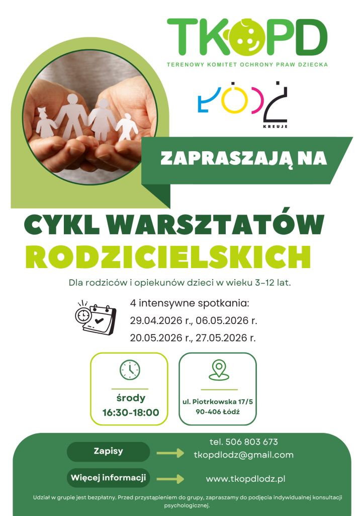 Zapraszamy rodziców i opiekunów na cykl bezpłatnych, praktycznych warsztatów, które pomogą lepiej zrozumieć potrzeby dzieci, budować z nimi bezpieczną relację i rozwijać własne kompetencje wychowawcze.