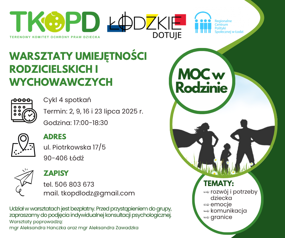 Warsztaty skierowane są dla mieszkańców Województwa Łódzkiego. Dzięki współfinansowaniu zadania z budżetu Samorządu Województwa Łódzkiego udział jest bezpłatny.